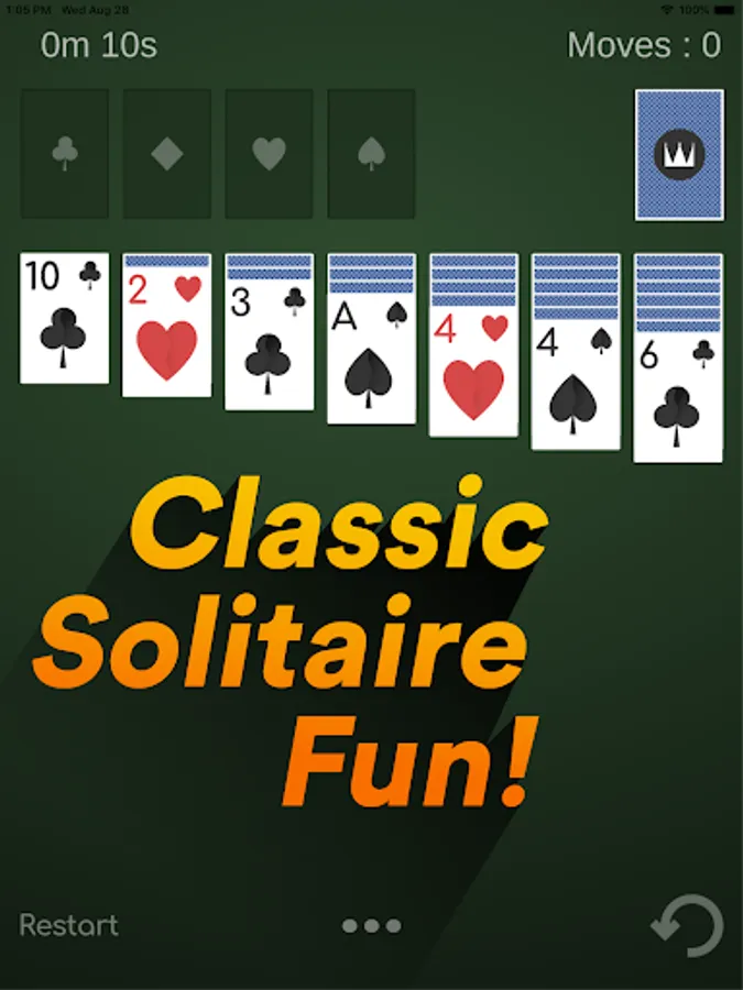 Solitaire is the classic version of solitaire card game, with all the essential features you love and no extra frills. It is also completely FREE.