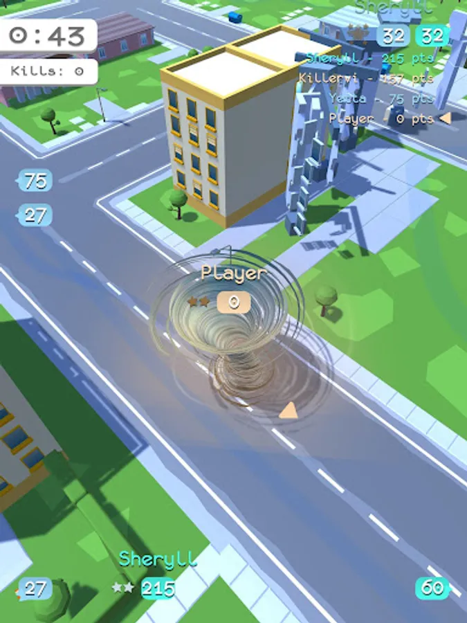 Discover how tornados behave by diving in this game and challenge other tornados, this game will let you feel like a real huge tornado that can destroy anything on its way