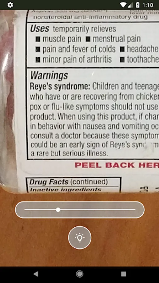 Reading Glasses provides a variable zoom and a flashlight, so you increase the magnification to a level you feel comfortable with and add a little light to dark situations.