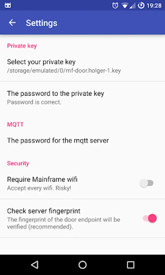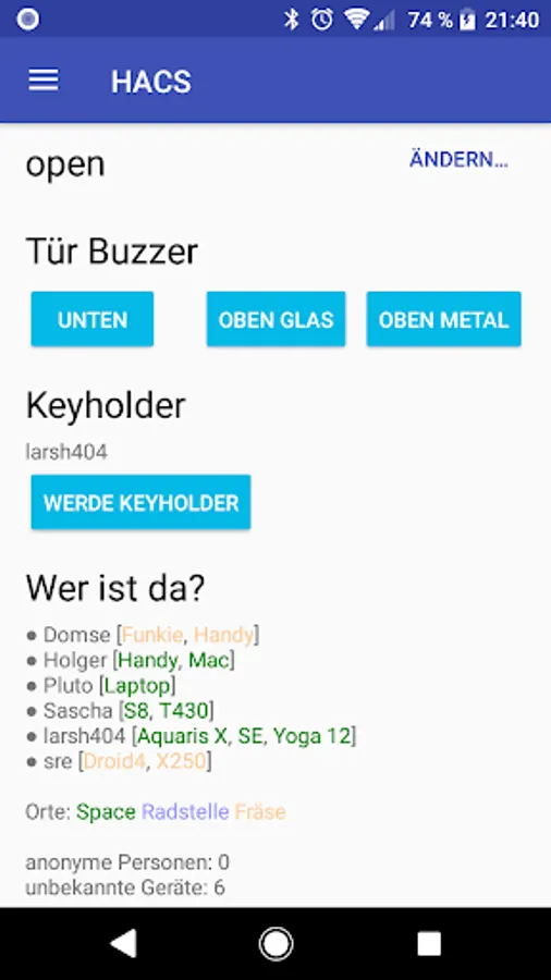 Give this as a key holder to open and close the door, and set the status appropriately.