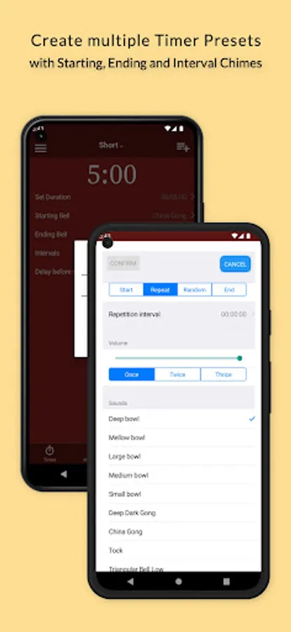 ️️• Set up different chime bells for start and end, and for intervals during the session.