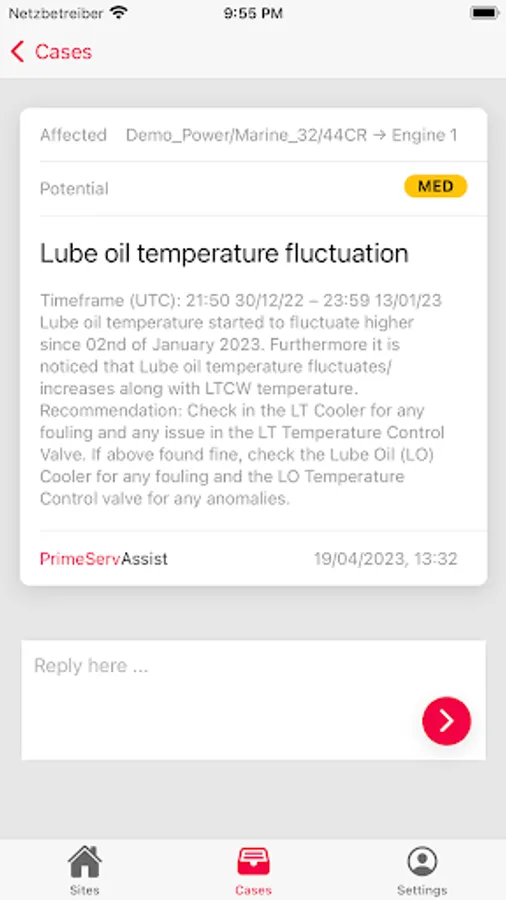 This app is available to users having a PrimeServ Assist service contract with MAN Energy Solutions.