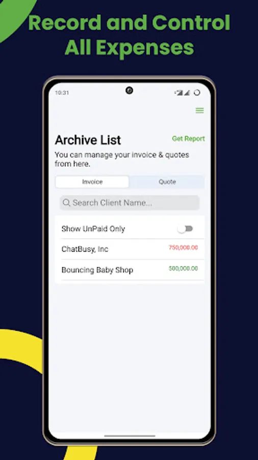 • All your open and overdue invoices are displayed for easy cash flow management.