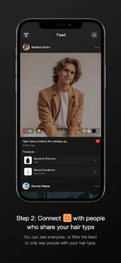 You can see everyone or only people with the same hair type as you and what products they use. You can post your amazing mane along with the products you used to achieve your style so others who share your hair type can buy the same products.