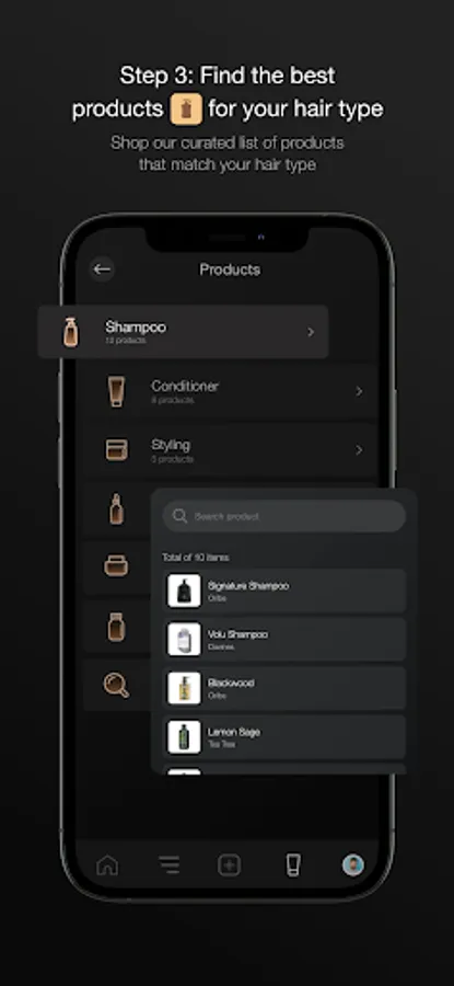 In the product search section you can discover the best products for you, you can search by product type (shampoo, conditioner, etc), or by brand. You can view the ingredients of each product to see if there is anything you want to avoid, and you can shop for that product through the app.