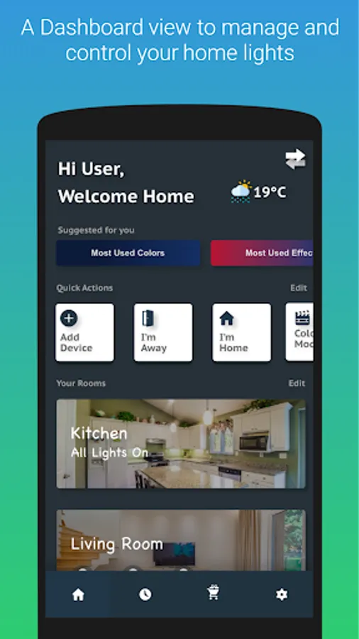 Mansaa HomePlus free app is used to connect the new Wi-Fi enabled Multi-Color LED Lights which are launching soon. You will use app to control lights wirelessly from anywhere in the world to do various actions that you could not do with your lights before and all this is possible with your existing Android device and purchasing Mansaa SmartShine Wi-Fi LED lights. The app designed is beautiful, easy to use that it can easily be operated by any age group. Just download the app, install bulb into any lamp holder, follow the instructions within the app and start controlling your lights wirelessly.