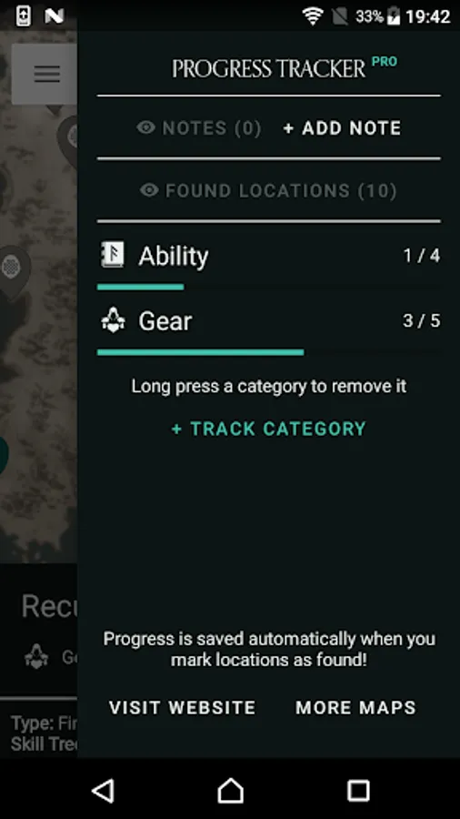• Progress Tracker - mark locations as found and track the progress of your collectables.