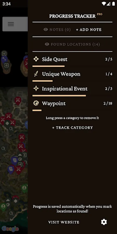 • Progress Tracker - mark locations as found and track the progress of your collectables.