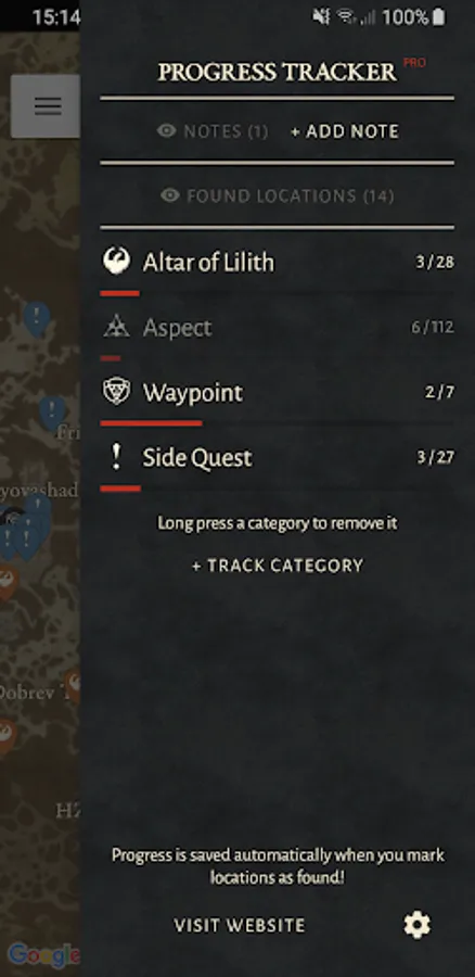 • Progress Tracker - mark locations as found and track the progress of your collectables.