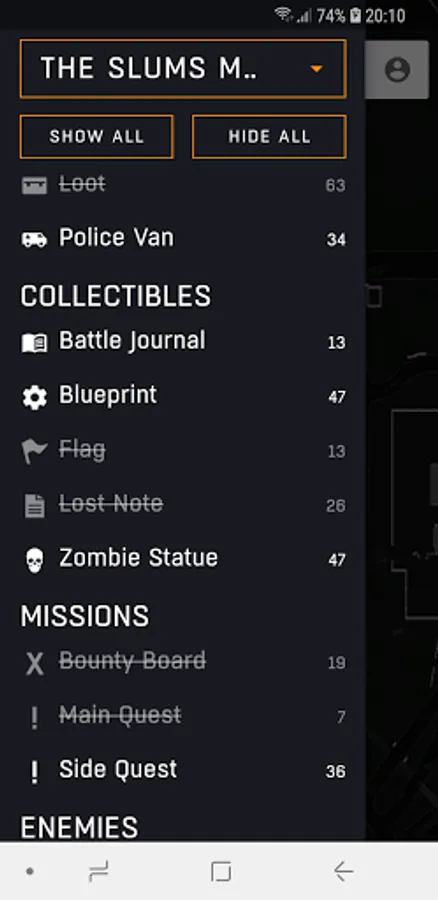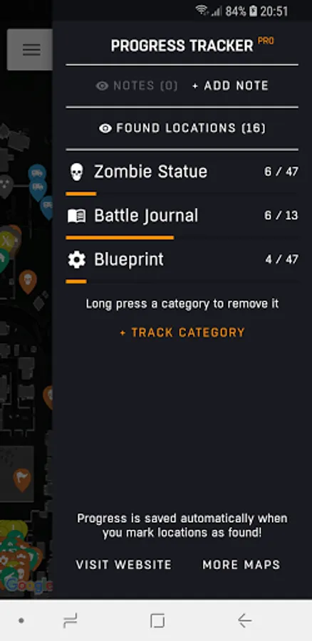 • Progress Tracker - mark locations as found and track the progress of your collectables.