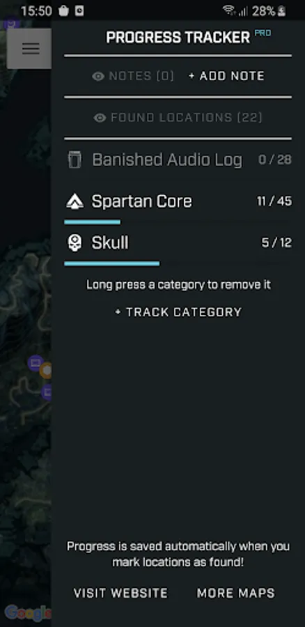 • Progress Tracker - mark locations as found and track the progress of your collectables.