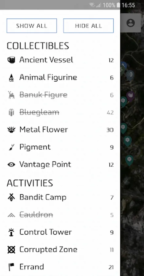 • Progress Tracker - mark locations as found and track the progress of your collectables.