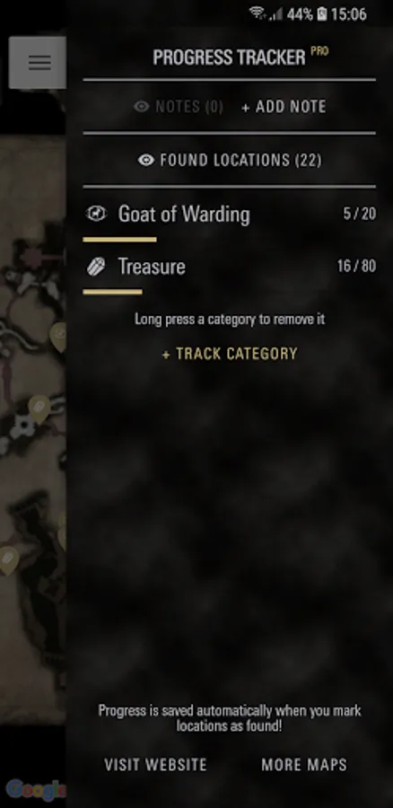 • Progress Tracker - mark locations as found and track the progress of your collectables.