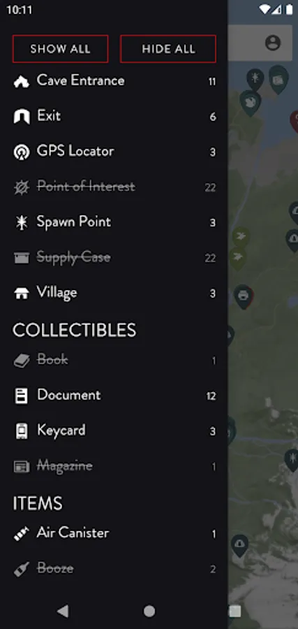 • Progress Tracker - mark locations as found and track the progress of your collectables.