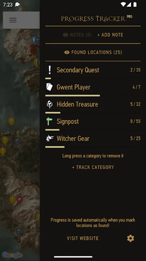 • Progress Tracker - mark locations as found and track the progress of your collectables.