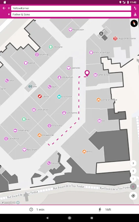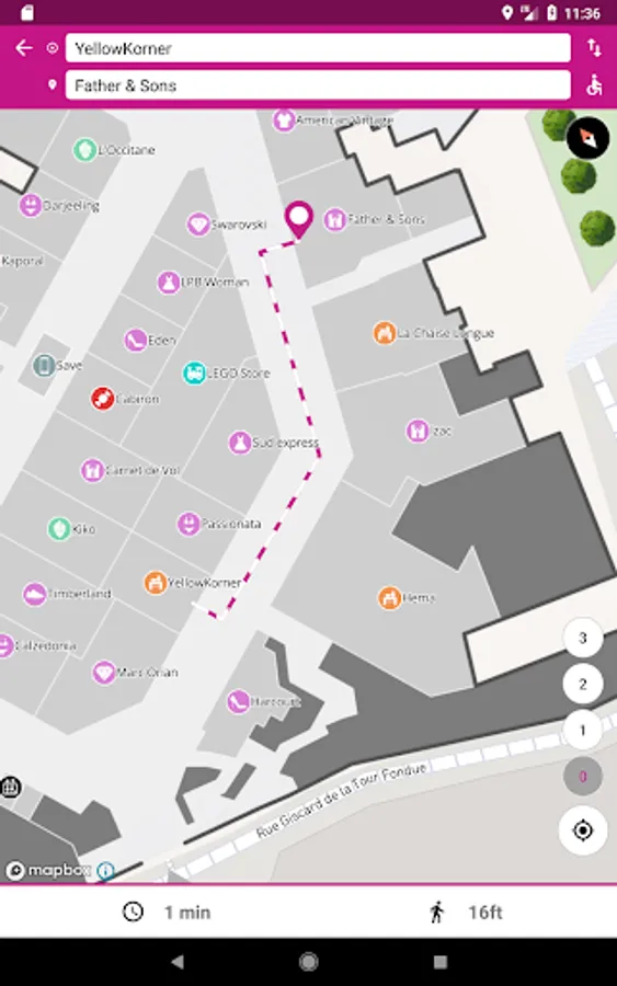 Indoor maps are seamlessly integrated within traditional outdoor maps. All you need to do is zoom in to enter the building. Mapwize has a unique search engine that allows you to easily locate products in a shop, pieces of art in a museum, phone charging stations in an airport, seats in a concert hall, booths in an exhibition, and much more. All of that is provided through a direction engine that computes the best direction toward your destination. It includes a dedicated mode for disabled people. In case of emergencies, you can use Mapwize to find first aid kits, AEDs, emergency exits or fire extinguishers.
