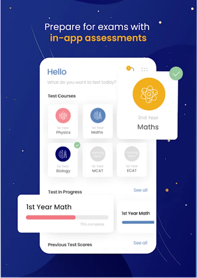 Maqsad in-app tests provide access to a wide range of yearly and topical past papers that help students prepare for their exams and understand complex topics for class 9 matric, class 10 matric, FSc Pre Medical & Pre Engg courses, and FSc part 1 and part 2 past papers for all subjects - Physics, Chemistry, Biology, Math.