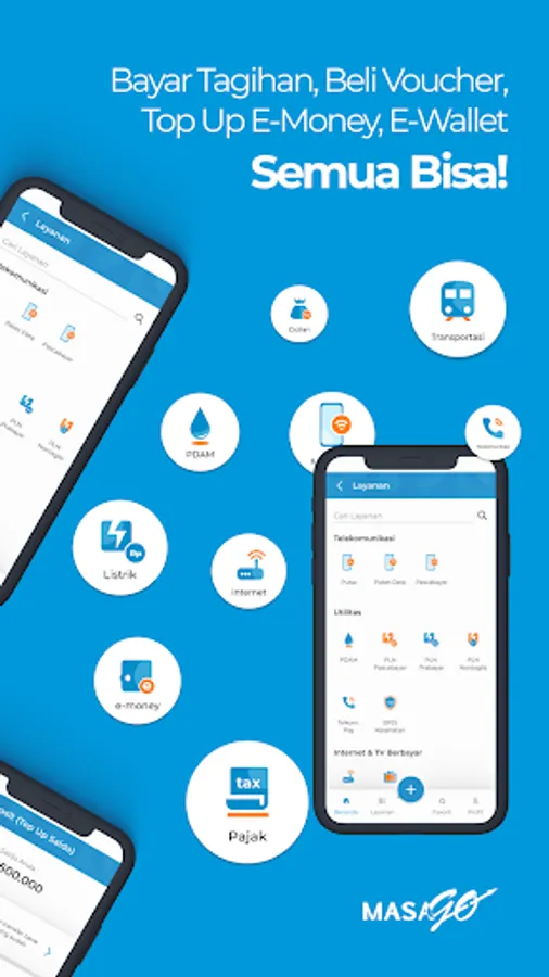- GO-PAY, GRAB/OVO, Mandiri e-money, BNI TapCash, DANA, LinkAja Topup Vouchers