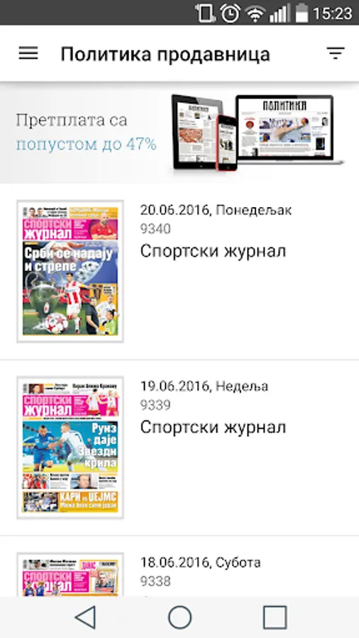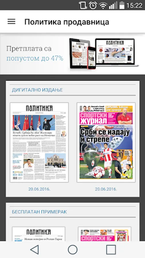 Continuing the tradition of one of the oldest and most respected media outlets in the region, publishes two daily newspapers "Politika" and "Sports Journal". Drawing on a century-old tradition on the one hand and modern technology on the other hand, we have decided to present you Privacy Mobile application, through which you can easily and conveniently monitor the number of products your favorite news outlets.