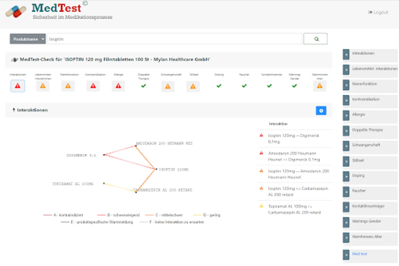 Safety can be significantly increased by using the "MedTest" prescription software. The integrated dose, interaction and contraindication checks make it possible to significantly increase the quality level in the drug prescription process.
