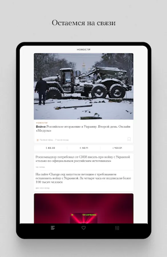Meduza will cover the war in the way it sees fit, in accordance with its editorial standards, using all available and credible sources. This is also why we believe that we can be blocked at any moment. The app is a reliable way to stay in touch. Download it right now, tell your family and friends about it.