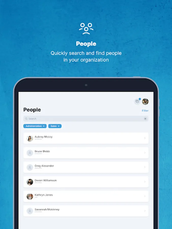 Get connected smoothly with your colleagues from different teams within the entire organization. Well-connected people find better solutions faster.