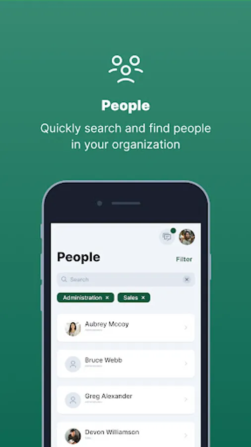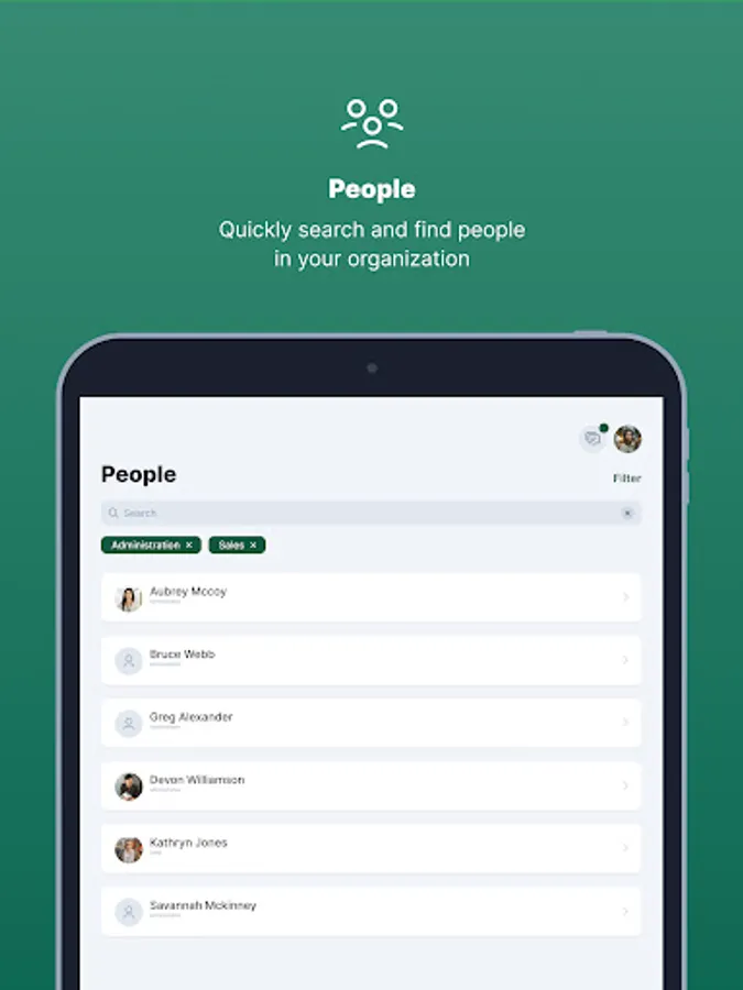 Get connected smoothly with your colleagues from different teams within the entire organization. Well-connected people find better solutions faster.