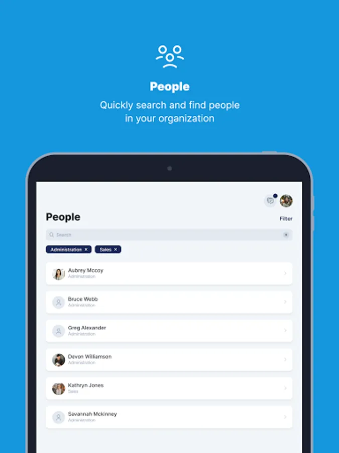 Get connected smoothly with your colleagues from different teams within the entire organization. Well-connected people find better solutions faster.
