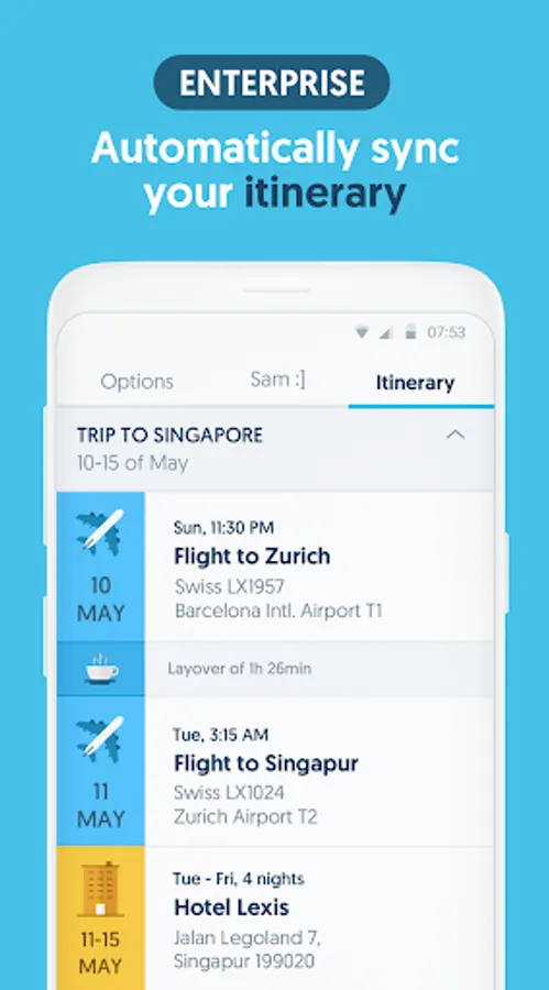 Organize all your travel info in one single app with Sam. ➡️ Your business travel assistant.