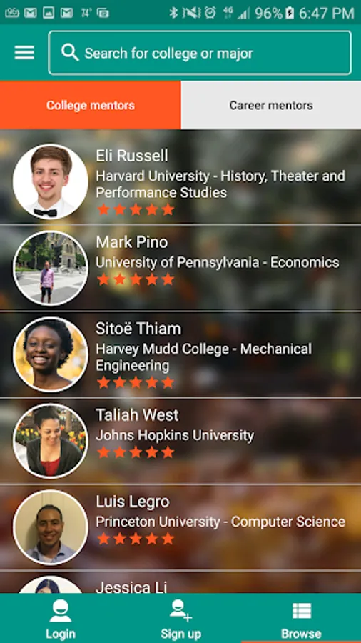 Mentr is the most popular app for seeking college advice directly from current college students. Talk to college students on phone regarding essay reviews, college applications,college advice, college life, campus life, nightlife, college career opportunities and more.
