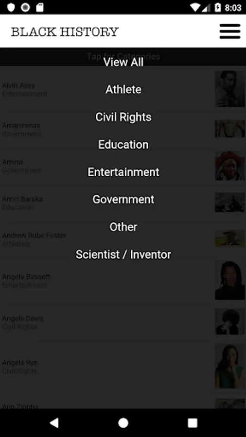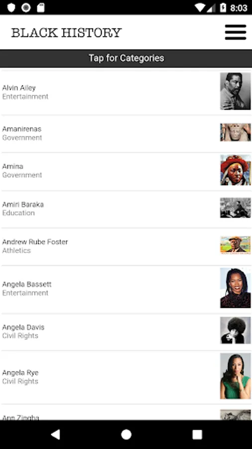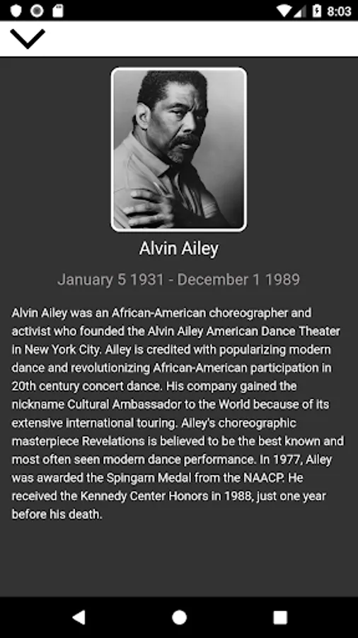 This app was made as a tribute to learn about some of the great people of color: who are they are and what they have accomplished for the culture. We are always adding new people, so if you have a person in mind that should be added feel free to use our app to let us know.