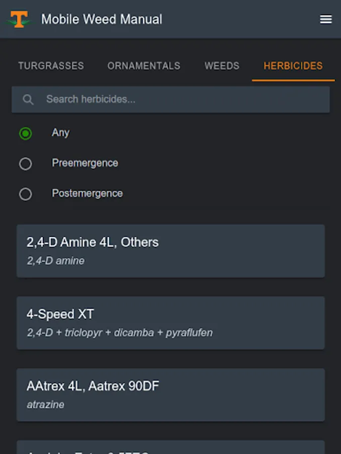 Herbicide labels are constantly reviewed and revised. Listed herbicides were registered for the prescribed use when this manual was developed. Should the registration or prescribed use of a herbicide be canceled prior to revision of this manual, the herbicide would no longer be recommended by the University of Tennessee. Up-to-date information on herbicide efficacy is posted regularly on the Tennessee Turf Weeds web site.