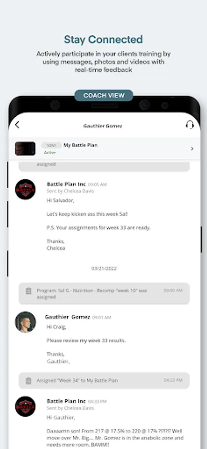- Coach Messenger - send messages, pictures, workout videos in real-time for feedback.