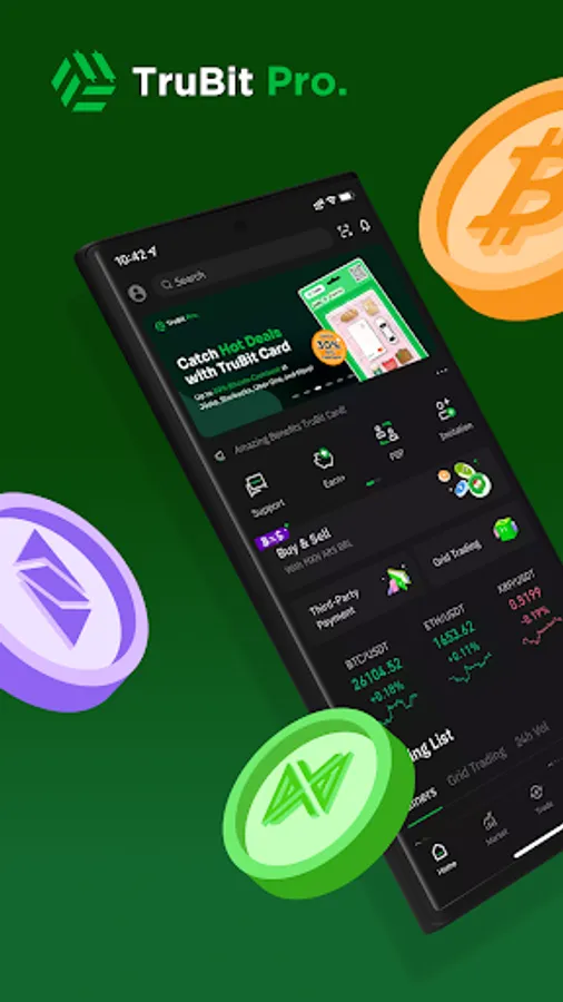 The integral platform that your finances need, a one-stop Crypto ecosystem for all your needs. TruBit Pro is the most complete and reliable cryptocurrency exchange in Latin America, with more than 70 cryptocurrency assets and more than 60 trading pairs, including DeFi and NFT sections. The TruBit Pro app provides full information and tools for users to trade on the go.