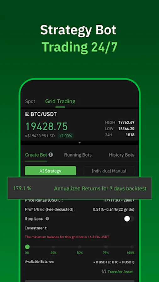 Smart Trading - Take trading to the next level with more advanced tools and bots. Our Grid trading tools allow you to buy at a low price and sell at a higher one, giving you semi-autonomous profits;