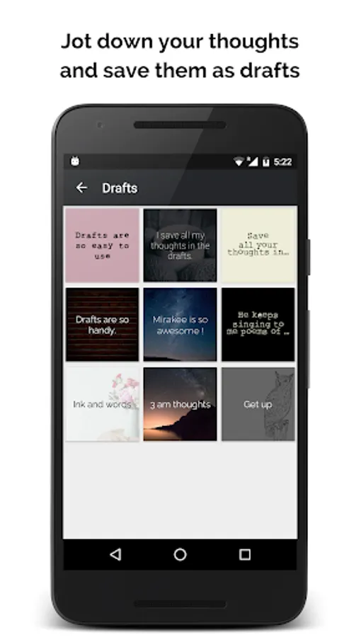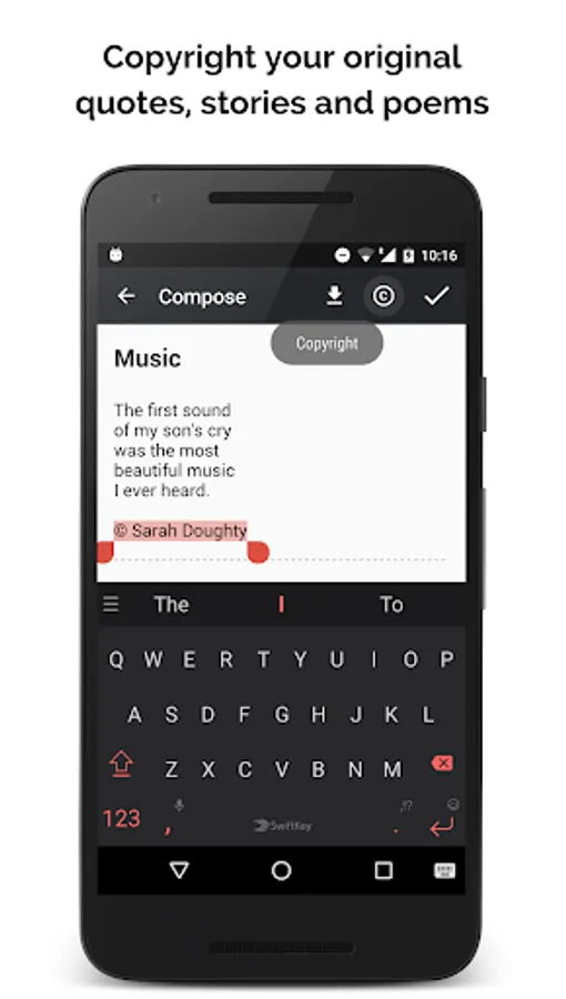 Write and edit your quote, poem or story and copyright your original words. Share your quotes and poetry across various platforms as words on picture. Use this writing app as your social writing journal or diary and write your text on images.