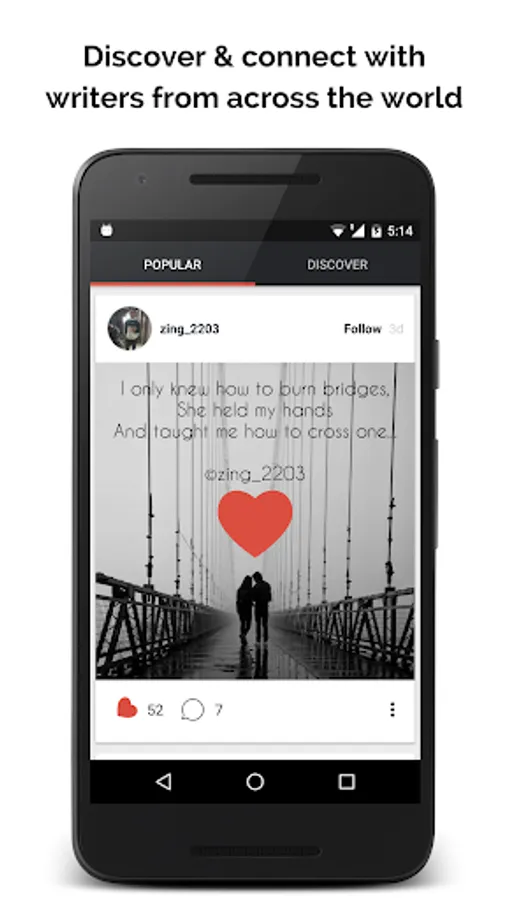 Showcase your quotes, poems, stories, micro-tales, blogs, haikus, or any kind of write-ups and design them into visually stunning posts using in-app designing tools. Share your thoughts and emotions through creative writing.