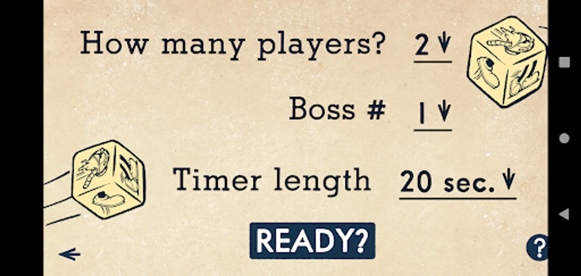 Use this app to conveniently keep time and calculate scores for your Rounds! Start by setting a player count, Boss #, and timer length on the next screen. Once your Attack Cards are revealed, start the timer. A brawl is surely brewing!