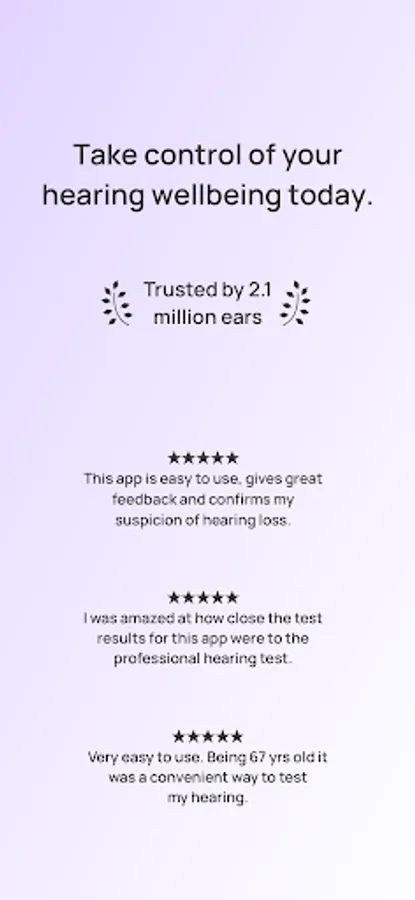 - Get instant results: We turn your auditory data into tangible insights to help you reflect on your hearing health.
