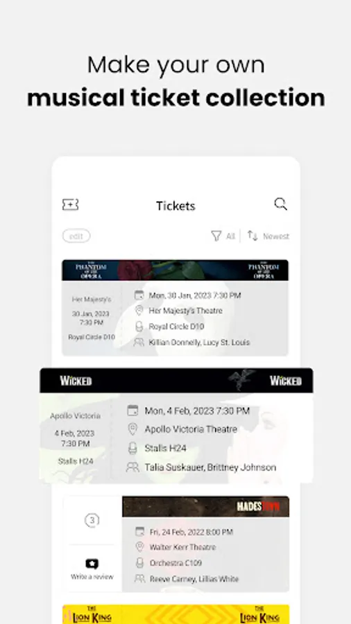 Record your musicals with Musicalians by adding tickets. Upload your ticket QR before the show, and nothing required to enter theatre, except us!
