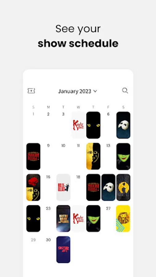 After you add your musicals, you can check your theatre schedule with our 'Calendar' tab. Screenshot the calendar, and share your monthly musicals!