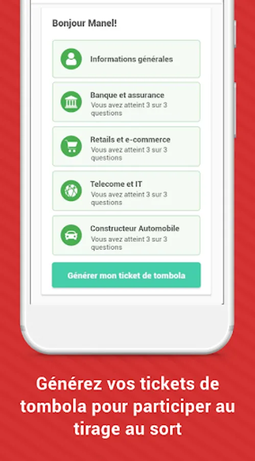 Get a first raffle ticket after unlocking all categories. Double your chances and win in a second by sharing your results on social media. You can do the same with the Best Customer Service Tunisia application https://play.google.com/store/apps/details?id=io.mintit.msctn&hl=fr.