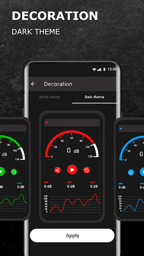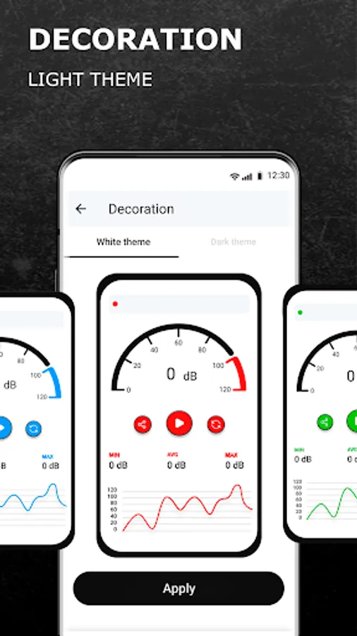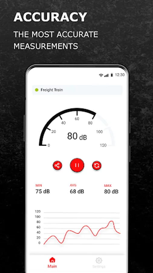 Noise meter uses your phone's microphone to read noise, sound in decibels (dB). After the data is processed, the signal is transmitted to your phone. The value of the electrical signal will correspond to the sound volume in decibels (dB). The noise volume information is shown on the graph and shows you the minimum, average and maximum values.