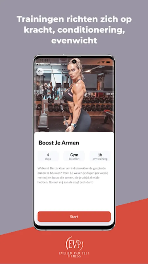 Evelien has more than 12 years of experience as a competition athlete, coach, personal trainer and as a vitality coach. This experience is brought together in the app. Through training that is professionally created and thought out by Evelien, all for building and developing a complete physique that makes you look, think and act like a real athlete.