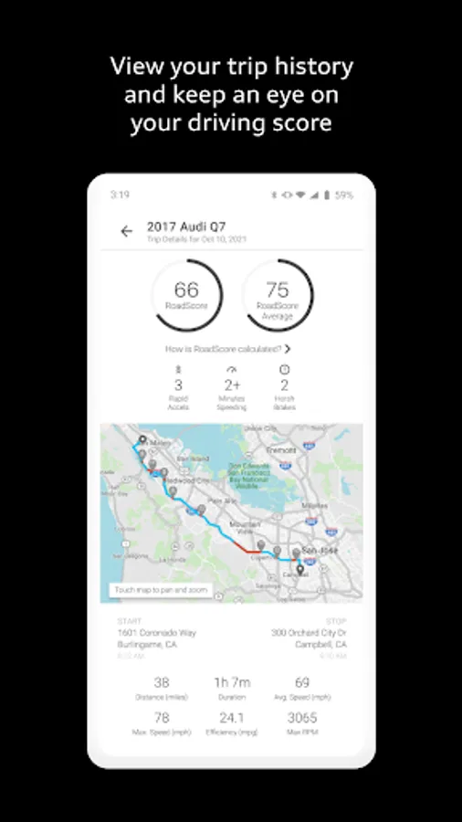 Get an easy-to-understand driving score for each trip. Increasing your score can help improve fuel economy and reduce wear and tear.