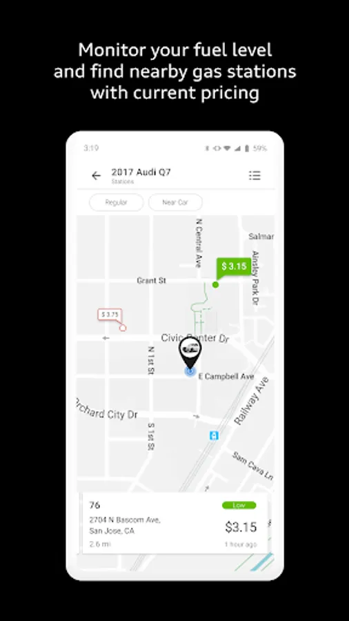 Easily monitor your car’s fuel level and get a list of nearby gas stations, sorted by price or distance.