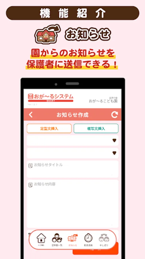 A "notification" function is available to send notifications from each facility to parents.