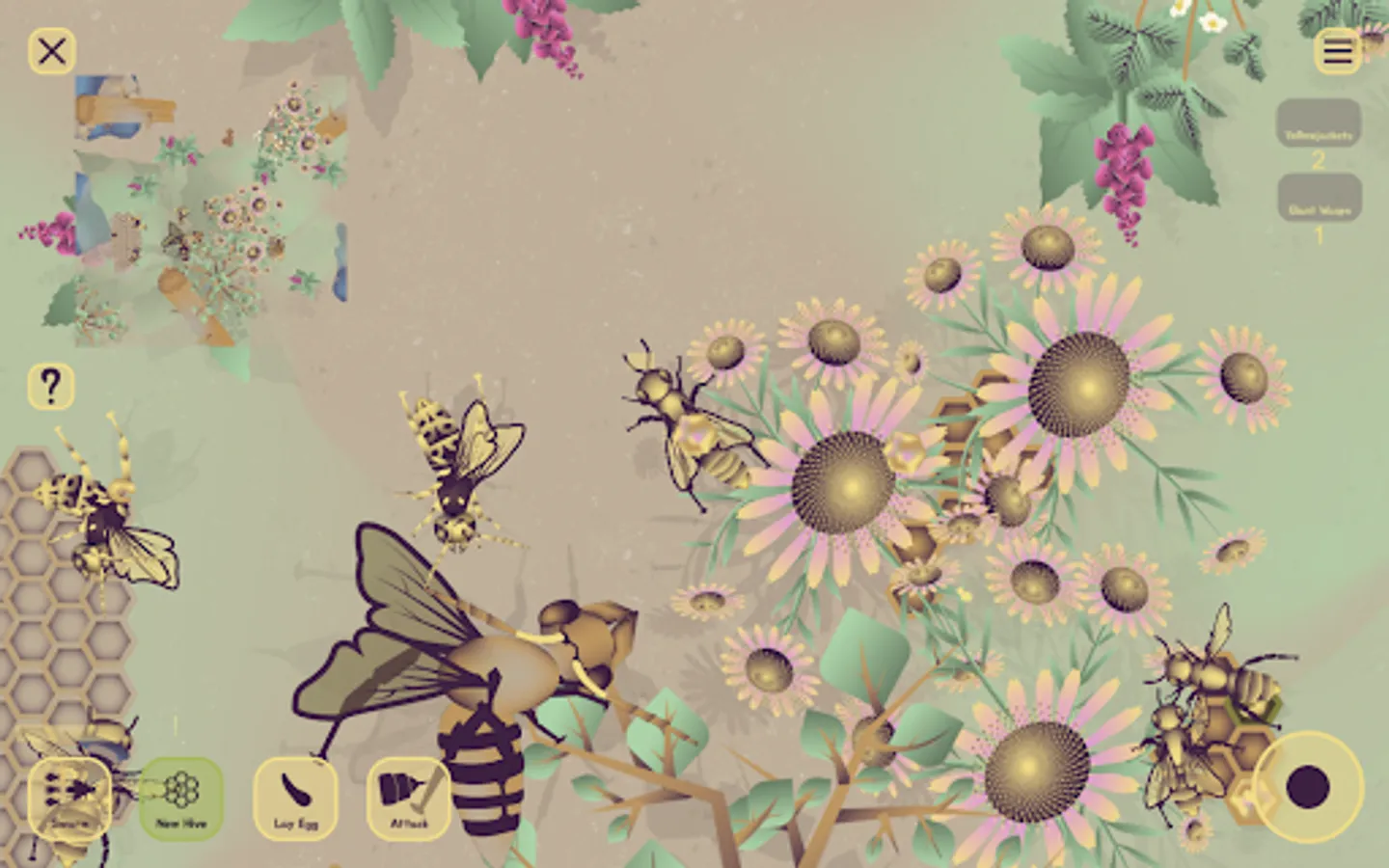 Lead as queen of a bee colony! Start a hive near flowers, lay eggs, and set the jobs of your expanding force of worker bees.