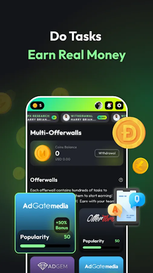With MoneyFree, you can earn rewards without any investment and withdraw them immediately through BTC, LTC, DOGE, or via PayPal in USD. We also offer a variety of gift cards for you to redeem. This one-stop app allows you to complete offerwall tasks, earn money, and cash out rewards hassle-free.