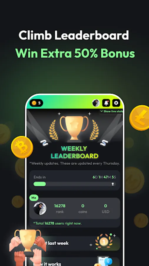 MoneyFree rewards users who work hard to complete offerwall tasks and surveys. We will count the users’ earnings once a week to make a ranking every Thursday. The top 5% and 15% in the leaderboard can receive an extra 50% and 15% of their earnings this week, respectively.
